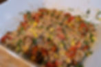 FARRO SALAD WITH HEIRLOOM TOMATOES, HERBS, ROASTED YELLOW SQUASH, & PISTACHIOS